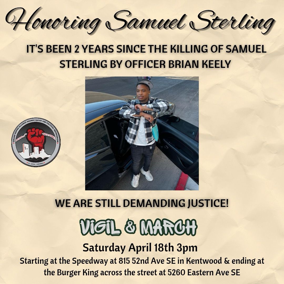 To honor Samuel Sterling and to come together in our commitment to justice we are hosting a vigil and march on Saturday, April 18th at 3pm.